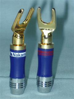 Conectores tipo garfo para caixa de som. Fabricados pela Nakamichi no Japão.
